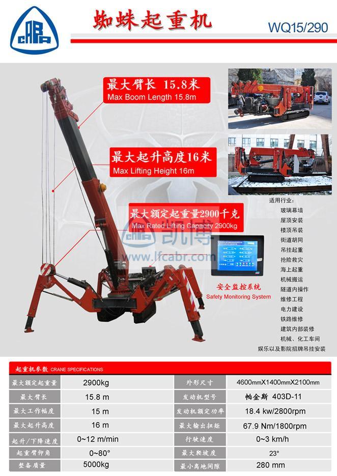 大作業(yè)幅度15m、大起升高度16m、起重量3t