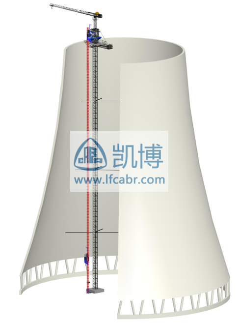 冷卻塔施工的專用設(shè)備。既為升降機(jī)提供附著體,又為施工中鋼筋和砼的儲(chǔ)存和水平運(yùn)輸提供平臺(tái)。