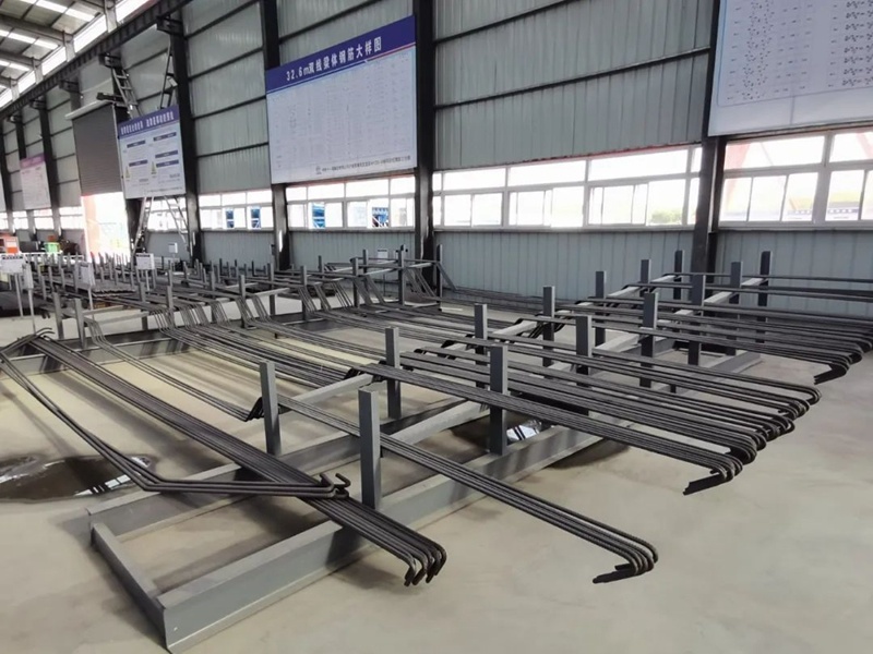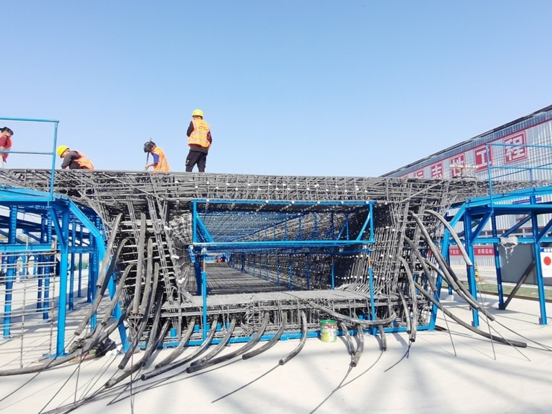 廊坊凱博建設機械科技有限公司(凱博科技)依托北京建筑機械化研究院有限公司在鋼筋加工機械領域多年的技術積累,針對高鐵箱梁預制施工各環(huán)節(jié)對鋼筋制品的差異化需求,潛心研究、精心攻關,按照中鐵十一局集團橋梁有限公司項目需求,助力新建首個滬渝蓉項目武宜段WYZQ-5標荊門鐘祥制梁場。其中鋼筋加工數(shù)字化項目,包含GQX-300數(shù)控鋼筋剪切生產(chǎn)線、GWXL2-32D數(shù)控彎曲中心、GWXL4-25D數(shù)控彎曲中心、GQX-GWX-25數(shù)控鋼筋剪切彎曲一體生產(chǎn)線、GGJ12數(shù)控鋼筋彎箍機、GT5-12調直機(32米)、GTWQ12調直五機頭、HJDW12焊接定位網(wǎng)等多種設備,可定制化生產(chǎn)高鐵箱梁預制施工各環(huán)節(jié)多種鋼筋制品。