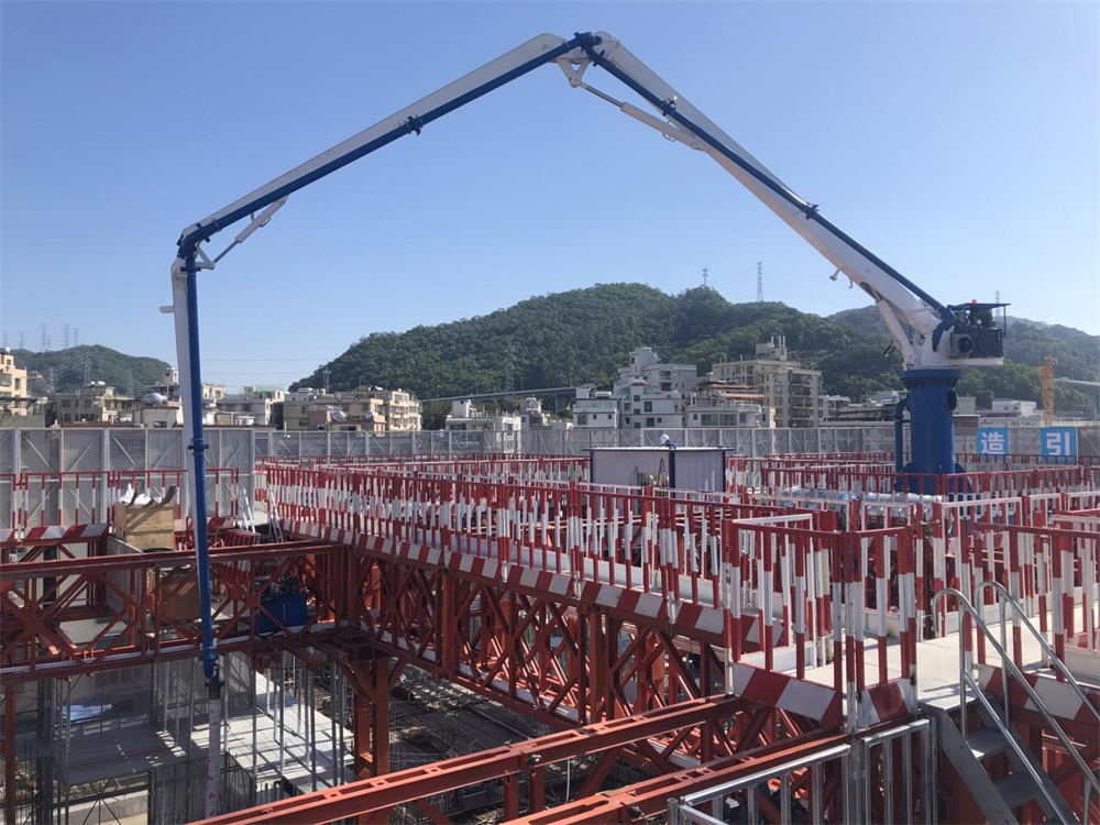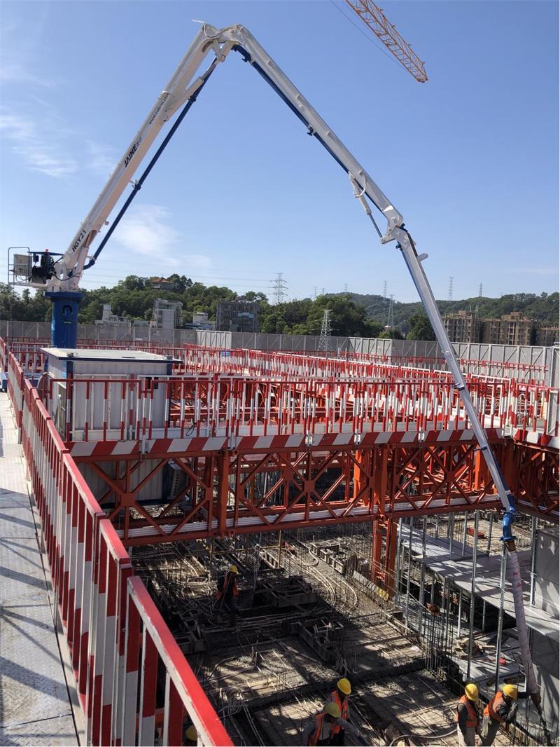 模架式液壓混凝土布料機(jī)自帶鋼平臺底座,與爬模架體連接傳遞施工載荷,無需自帶動力系統(tǒng),爬模爬升時(shí)帶動其爬升。其中HGY21模架式液壓混凝土布料機(jī)于2021年11月成功應(yīng)用在使用“住宅造樓機(jī)”的裝配式建筑領(lǐng)域(中建三局承建的廣州大源村項(xiàng)目)。