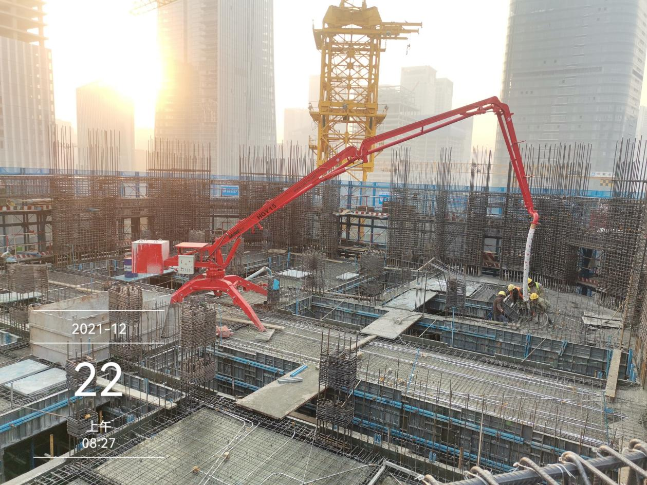 中信泰富·濟(jì)南尊超高層項(xiàng)目位于濟(jì)南CBD核心區(qū),新濼大街以北,茂嶺三號(hào)路以西,綢帶公園以東,占地面積2.13萬(wàn)平方米,總建筑面積28.23萬(wàn)平方米。項(xiàng)目共建設(shè)2棟商務(wù)樓及大型商業(yè)裙房,其中T1塔樓地上64層,總高度326米;T2塔樓地上23層,總高度123米。項(xiàng)目建成后,將成為濟(jì)南又一座突破300米的超高層建筑。該項(xiàng)目使用的布料機(jī)為凱博科技生產(chǎn)的HGY32樓板爬升式布料機(jī)。