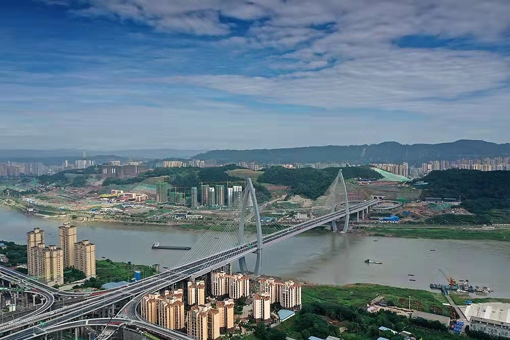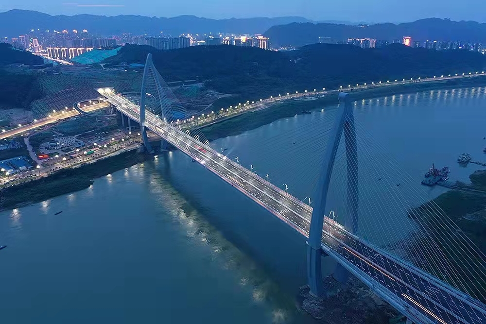 四川宜賓鹽坪壩長(zhǎng)江大橋是宜賓市城市內(nèi)環(huán)線的重要跨江節(jié)點(diǎn)工程,也是宜賓目前體量最大的橋梁。索塔是全國(guó)首次采用的“魚躍長(zhǎng)江”造型,猶如一條躍出水面、向上飛騰的江魚。